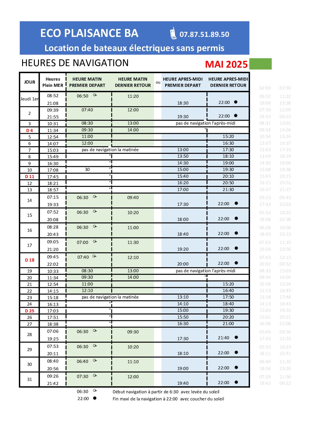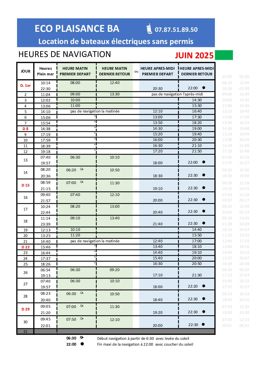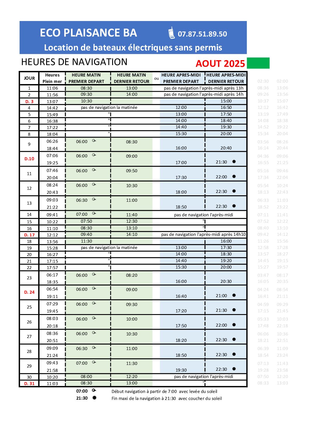 Les horaires de navigation en bateaux sont contraints par les horaires des marées que vous pouvez télécharger dans les documents ci-dessous, en fonction de la date qui vous convient.